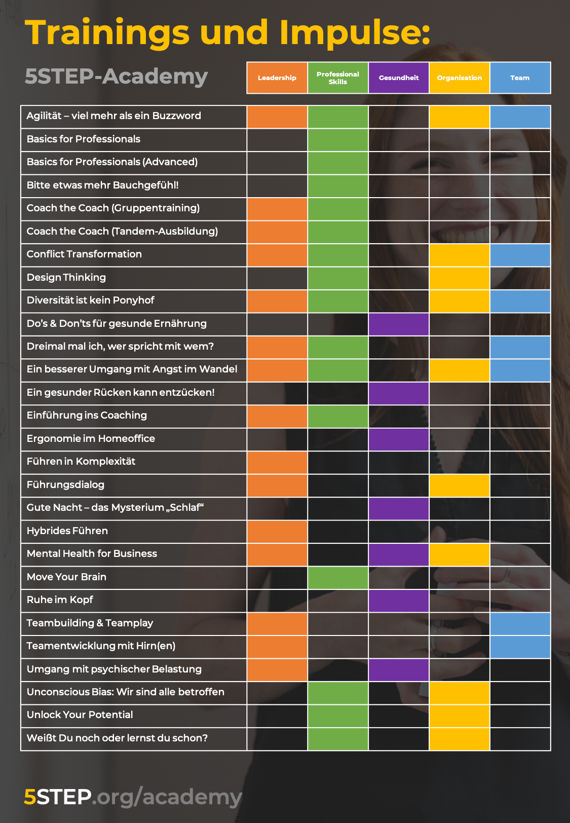 Hier sind unsere Trainings und Impulse kompakt beschrieben.